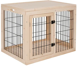 Idealny w sytuacjach stresowych lub w przypadku krótkiej nieobecności, do tymczasowego zakwaterowania psów. Bezpieczne schronienie: wykonane z surowego drewna z solidną metalową kratką. Naturalnie jasny kolor drewna: dla stworzenia domowej atmosfery.
