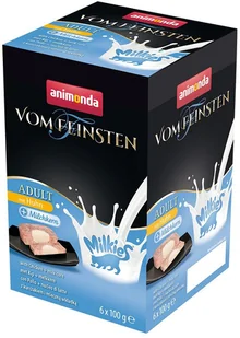Pożywienie zostało wyprodukowane z wybranych, wysokowartościowych składników, w tym z dużej ilości mięsa i dobrej jakości mleka. Połączenie dwóch elementów: mięsa i mleka jest źródłem niepowtarzalnych przeżyć smakowych i nadaje się perfekcyjnie dla wybrednych kotów lub pupilów, którym chcemy podarować chwilę przyjemności. Ta bezzbożowa karma została wyprodukowana bez dodatku cukru i soi. Animonda Vom Feinsten Adult Milkies, 36 x 100 g w skrócie: