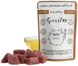 Gussto to esencja dobrego i zdrowego żywienia. Zawiera bardzo dużo mięsa idealnie odpowiadając specycznym wymaganiom pokarmowym kotów. Jest to karma monobiałkowa, a więc holistyczna, lekkostrawna i bardzo dobrze przyswajalna, zalecana także dla kotów o wrażliwym przewodzie pokarmowym. Stosowana także w dietach wykluczających przy alergiach pokarmowych.
