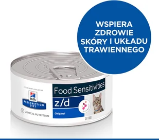Hill's Prescription Diet Feline z/d Food Sensitivities to karma stworzona specjalnie dla dorosłych kotów cierpiących na alergie i nietolerancje pokarmowe, które przejawiają się w problemach skórnych i zaburzeniach funkcjonowania układu trawiennego. Ta dietetyczna karma podstawowa wspomaga zdrowie skóry i może być podawana przy świądzie. Dzięki starannie dobranym źródłom białka i węglowodanów karma jest wysoce przyswajalna i zdrowa. Mieszanka włókien prebiotycznych wspomaga odpowiednią konsystencję kału. Twój kot będzie miał zapewnione wszechstronne wsparcie dla swoich funkcji życiowych i będzie mógł rozwinąć prawidłowy system immunologiczny.
