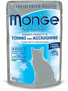 Karma stworzona z myślą o naturalnym karmieniu z wykorzystaniem tylko naturalnych, starannie wyselekcjonowanych składników. Stanowi kompletny pokarm dla kotów z pysznym tuńczykiem i anchois, ze wszystkimi cechami najwyższej jakości produktów: smakowitość płynąca ze świeżych, najwyższej jakości składników o wysokiej wartości odżywczej, bogatych w kwasy Omega 3 i białko oraz niskiej zawartości tłuszczu. Produkt jest całkowicie naturalny, w galarecie, bez barwników i konserwantów oraz glutenu. Doskonale pomagają utrzymać dobrą kondycję, rześkość i energię każdego dnia.