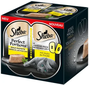 Już sama nazwa tej karmy zdradza jej zalety: Sheba Perfect Portions to idealnej wielkości pojedyncze porcje posiłków Twojego kota. Koniec z resztkami karmy! Koniec z napoczętymi tackami czy saszetkami zalegającymi w lodówce! Każda porcja jest zabezpieczona przed utratą świeżości, dzięki czemu Twój kot przy każdym posiłku otrzymuje świeże pożywienie. Prezentowana karma to wyśmienity pasztecik, który nie tylko z wyglądu jest niezwykle soczysty. Karma zawiera delikatne, drobne kawałeczki, zapewniające nieprzeciętne doznania smakowe, i jest dostępna w różnych wariantach smakowych.
