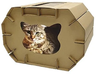 Croci Kartonowy drapak dla kota, zamknięte pudełko z dwustronnym 2-warstwowym słupkiem, dwupoziomowa konstrukcja, 50 x 38 x 35 cm