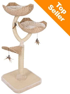 dzięki czemu łatwo odmienisz wygląd drapaka Hiacynt wodny i naturalny sizal: praktyczny i naturalny wygląd dzięki wykorzystaniu naturalnych materiałów Duża powierzchnia drapania: podstawa oraz słupki pokryte naturalnym sizalem Niezwykle stabilny i wytrzymały Ze stopniem w kształcie liścia 3 pluszowe zabawki na gumce Kolor: Plusz: kremowy Legowiska z hiacynta wodnego: naturalny Dwustronne poduszki:
