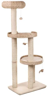 Atrakcją są również liczne pluszowe zabawki, zachęcające do psot i harców. Drapak Natural Home III: Kolor: beżowy Wymiary: dł. x szer. x wys. : 60 x 40 x 154 cm Naturalne materiały: drewno, sizal, hiacynt wodny 1 Podstawa: