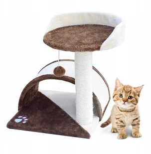 DRAPAK DLA KOTA HAMAK+BUDKA DRZEWKO ZABAWKA DLA KOTÓW BIAŁO-BRĄZOWY