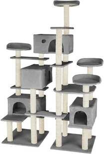 Dla kotów, które lubią przygody, komfort lub wspinanie: ten wszechstronny drapak firmy tectake spełni każde marzenie Twojego kota. Na kilku poziomach Twoi pupile mogą dać upust swojej skłonności do zabawy. Liczne sizalowe słupki idealnie nadają się do ostrzenia pazurów. Cztery platformy widokowe zapewniają dużo miejsca na relaks. Cztery domki dla kotów to przytulne miejsce odosobnienia. Dwie podstawy zabezpieczają wysoką budowlę przed przewróceniem się i gwarantują stabilną pozycję - nawet gdy koty dokazują. Spraw radość swoim małym pupilom i wybierz ten drapak dla kota firmy tectake.