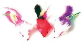 Zabawka dla kota - zestaw trzech kolorowych myszek z piórami.Idealne do podrzucania i przenoszenia w pyszczku!Zabawki w kształcie myszek z piórkami stymulują instynkt łowiecki kota, zachęcając go do obserwacji, skradania się i pogoni za „ofiarą”. Idealne do codziennej zabawy dla kotów domowych, szczególnie tych, którym brakuje aktywności fizycznej. Elementy wykonane z piórek przyciągają uwagę kota i są dla niego dodatkowym czynnikiem stymulującym.