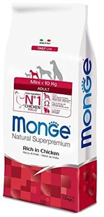 monge adult mini breed to pełnoporcjowa karma dla dorosłych psów małych ras o normalnej aktywności fizycznej. Świeży kurczaka zapewnia wysoką smakowitość i przyswajalność pokarmu, wspomagana witaminami i minerałami zapobiega odkładaniu cholesterolu.