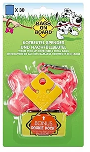 Bags on Board Dog Poop Pick-Up Dozownik kości i torby uzupełniające, różowy
