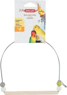 Huśtawka dla ptaków z drewniana żerdką na metalowym uchwycie w naturalnych kolorach. Kolorowe kuleczki oraz żerdka dla lepszej stymulacji intelektualnej i aktywności ptaka. Modna kolorystyka: zielony oliwkowy, szarobrązowy i beżowy w nawiązaniu do klatek Arabesque. Nietoksyczna zabawka, farba odpowiada normom żywieniowym. Wymiary [mm]: 100 x 155 x 195 mm