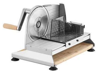 Zaletą tego jest to, że cięty produkt nie zakłóca ani nie blokuje dalszego „procesu rozruchu”. Pokarm do krojenia jest prowadzony przez korbę, a następnie ląduje na przewidzianej do tego bambusowej desce. Idealnie pasuje do szyn znajdujących się bezpośrednio pod krajalnicą, można go wyciągnąć i użyć jako rustykalny talerz do serwowania lub jako deskę do krojenia NAJWAŻNIEJSZE PARAMETRY Pełna metalowa konstrukcja Krajalnica obsługiwana ręcznie Kolor: srebrny metalik Nóż falisty o średnicy: 17 cm Zdejmowany zamek ze stali nierdzewnej Ustawianie grubości krojenia do: