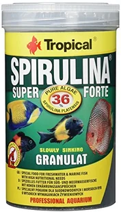 Spirulina Granulat to pokarm w formie wolno tonącego granulatu z dodatkiem spiruliny (6%), przeznaczony do codziennego karmienia ryb roślinożernych i wszystkożernych w akwariach słodkowodnych i morskich.