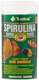 Super Spirulina Forte Mini Granulat to roślinny pokarm w formie drobnego granulatu z wysoką (36%) zawartością spiruliny.
