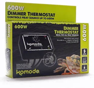Termostat Dimmer Komodo załączy żarówkę tylko na 50% mocy. Utrzymuje stałą odpowiednią temperaturę bez wyłączania i załączania żarówki w kółko. Do jakich urządzeń się nadaje$59- żarówka grzewcza (punktowa/neodymowa/podczerwona/nocna)- emiter ciepła ceramiczny- kabel grzewczy- mata grzewczaMaksymalna moc źródeł ciepła: Do 600W. Termostat może obsługiwać dowolna ilość urządzeń, gdzie ich sumaryczna moc nie przekroczy 600W. Czyli np: 4 x żarówka 100W 2 x kabel 50W i 2 x mata 50W.