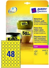 Avery Zweckform Etykiety Heavy Duty; A4, 20 ark./op., śr. 30mm, żółte, poliestro