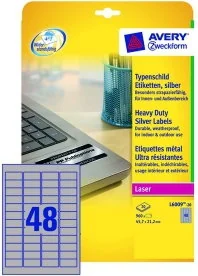 Avery Zweckform Etykiety Heavy Duty srebrne 45,7 x 21,2 mm, 48 etykiet/A4 ZW264