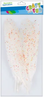 Zalety produktu: Piórka dekoracyjne CRAFT WITH FUN są doskonałym dodatkiem do wszelkiego rodzaju prac plastycznych. Idealne do własnoręcznie tworzonych dekoracji, elementów garderoby i wystroju wnętrz, a także do kreatywnego dekorowania pudełek czy prezentów. Używaj tych produktów w połączeniu z innymi akcesoriami oraz kompletami z serii CRAFT WITH FUN Zawartość opakowania: 6 szt. białych piórek ozdobionych brokatem.