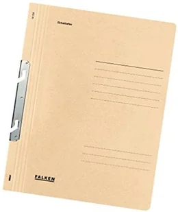 Skoroszyt hakowy Falken 50 szt. Przód okładki pełny kremowy A4 Metalowe wąsy od dołu(odwrotnie) Wykonany z tektury z recyklingu Wpinany do segregatorów. Wyprodukowano w Niemczech.