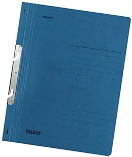 Skoroszyt hakowy Falken 50 szt. Przód okładki pełny niebieski A4 Metalowe wąsy od dołu(odwrotnie) Wykonany z tektury z recyklingu Wpinany do segregatorów. Wyprodukowano w Niemczech.