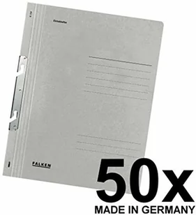 Skoroszyt hakowy Falken 50 szt. Przód okładki pełny szary A4 Wykonany z tektury z recyklingu Wpinany do segregatorów. Wyprodukowano w Niemczech.