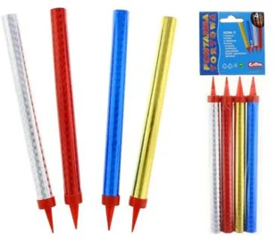 Każda rurka z zewnętrzej strony jest w innym kolorze. W celu odpalenia fontannę należy umieścić pionowo, następnie zapalić papier uszczelniający i niezwłocznie oddalić się na odległość ok. 1 m. Z fontanny sypią się złoto-srebrne iskierki. Do artykułu dołączona jest instrukcja obsługi. Produkt nie przeznaczony do użytku przez osoby poniżej 18 roku życia.