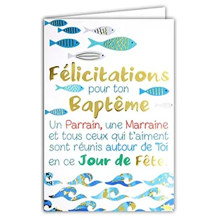 Kartka z życzeniami na chrzest, chrzest, chrzest, chrzest, chrzest, chrzest, ryby, wodę, niebieski, złoty, wyprodukowana we Francji