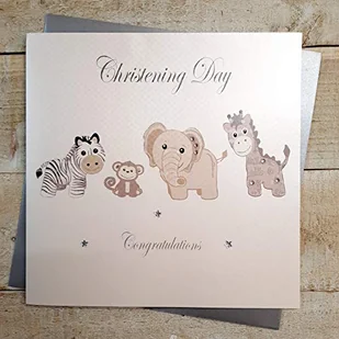 białe bawełniane kartki Dzień Gratulacje, ręcznie robione duże kartki na chrzest (srebrne zabawki)