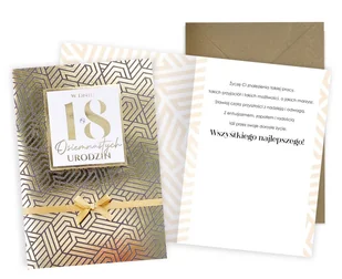 Szczegóły produktuRóżniące go od innych cechy to: po złożeniu wymiary to 145 x 195 cm, koperta zgodna kolorystycznie z wyglądem kartki, wnętrze wypełnione jest kreatywnymi życzeniami. Ponadto kartka zawiera różne, bogate zdobienia: np. dekoracje przyklejane, detale przypominające biżuterię, brokat, metaliczne folie, tłoczenia itp. – wszystko zależne od konkretnej wersji wzoru. Jest to idealny upominek na urodziny osiemnastolatka.