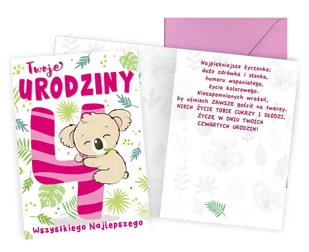 Urocza kartka na 4 urodziny, stworzona z myślą o dziewczynkach, pochodzi z linii Passion Premium - eleganckiej serii kartek okolicznościowych proponowanych w atrakcyjnej cenie. Wyjątkowość kartek z serii PR polega na ich unikalnych dekoracjach. Każda kartka charakteryzuje się co najmniej dwoma rodzajami ozdobień - mogą to być na przykład brokat, tłoczenia lub metaliczne folie. Odkryj piękno zawarte w takim detalu!