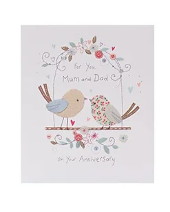 UK Greetings Kartka na rocznicę ślubu dla mamy i taty - wzór ptaków, wielokolorowa, 159 mm x 184 mm