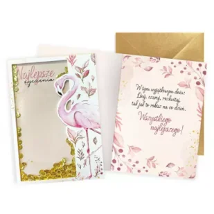 Kartka z serii Konfetti KNF-049 Najlepsze życzenia Każda kartka z serii Konfetti Kukartka w zależności od wzoru posiada element wypełniony konfetti brokat, złote gwiazdki, cekiny, kolorowe kuleczki . Oprócz tego, kartki z tej serii są zabawne, kolorowe na zewnątrz i w środku, mają też dodatkowe dekoracje, w zależności od wzoru tłoczenia, kolorowe folie metaliczne, elementy biżuteryjne, wstążeczki itp. Cechy szczególne wielkość B6, 16. 6 x 11. 7 cm po złożeniu, koperta w zestawie, kolorowa, okazja ogólne życzenia.