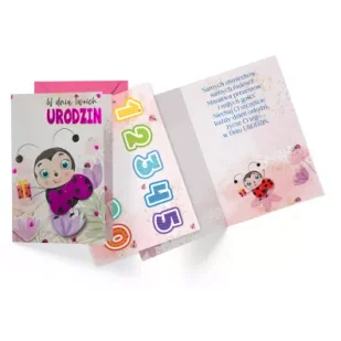 Kartka Dream Cards "Urodziny" dziecięce, z wymiennymi cyferkami DK-1071 Kartka B6 z ozdobnej serii Dream Cards na Urodziny - nieduża, ale robi wrażenie dzięki atrakcyjnej kolorystyce i ciekawym zdobieniom. To idealny wybór łączący przyjazną cenę z jakością. Kartki z tej serii mają wyjątkowy dodatek - naklejki z cyferkami, z których można ułożyć dowolny wiek solenizanta. Cechy szczególne wielkość B6, 16. 6 x 11. 7 cm po złożeniu, koperta w zestawie, kolorowa, zdobienia odstawniki, brokat itp.