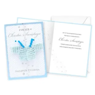 Kartka Dream Cards "Z okazji Chrztu Świętego" DK-1231 Kartka B6 z ozdobnej serii Dream Cards na urodziny z wymiennymi cyframi - nieduża, ale robi wrażenie dzięki atrakcyjnej kolorystyce i ciekawym zdobieniom. To idealny wybór łączący przyjazną cenę z jakością. Cechy szczególne wielkość B6, 16. 6 x 11. 7 cm po złożeniu, koperta w zestawie, kolorowa, zdobienia kolorowe, różnorodne, bogate w zależności od wzoru przyklejane dekoracje, elementy biżuteryjne, odstawniki, metaliczne folie, tłoczenia itp. , okazja chrzest