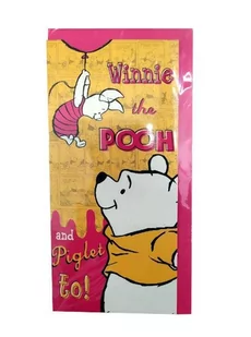 Ozdobiony motywem Kubusia Puchatka. Z miejscem do wpisania życzeń. Z kopertą.