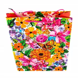 Ozdobna torba papierowa. Doskonale sprawdzi się jako opakowanie na prezenty. szerokość: 26 cm wysokość: 32 cm głębokość: 10 cm W sprzedaży kilka różnych kolorów widocznych na zdjęciu.