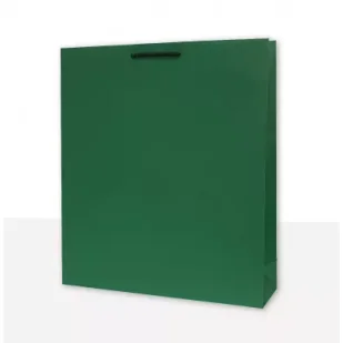 Torba jednobarwna zielona o wymiarze wys 40 cm szer 35 cm głęb 10 cmwykonana z papieru barwionego w masie o gramaturze min 120g/m2,uchwyt sznurkowy bawełniany, usztywnione kartonem denko i zakładki górne (min 350g),Opakowanie zawiera: 10 sztuk