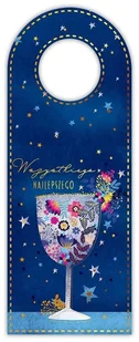Zawieszka na butelkę - Kieliszek. Artykuł papierniczy. Zawieszka na butelkę, na różne okazje śmieszne i poważne Zdobiona złotem ekskluzywna dekoracja butelki