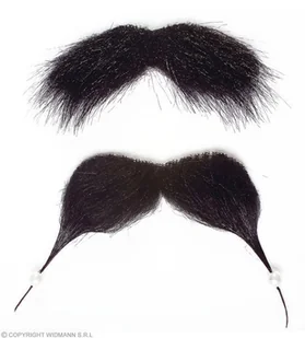 Czarne wąsy + kozia bródka z perłami. Wąsy są dosyć długie, ciekawie wymodelowane. Broda lekko się po środku rozdziela na boki. Broda i wąsy posiadają mocowanie na klej.