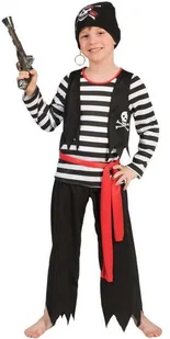 Kompletujesz kostium na pirackie party dla swojego dziecka$79 Pirat Pat to absolutny hit bali karnawałowych! Idealnie nadaje się na szkolny bal przebierańców lub przedstawienie. Zestaw PIRATA to bluzka w paski z czarną kamizelką, spodnie oraz czerwony pas. POZOSTAŁE AKCESORIA WIDOCZNE NA ZDJĘCIU NIE SĄ ELEMENTEM ZESTAWU.