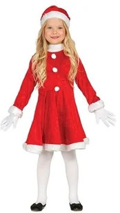 Obwód czapki - ok. 56 cm Wymiary mogą różnić się od podanych (+)(-) 2cm Urocza sukieneczka i czapka w kolorze czerwonym z obszyciami z futerka w kolorze białym. Sukienka dodatkowo ozdobiona białymi pomponikami. Do kompletu mikołajowa czapka z pomponem. Kostium Mikołajki wykonany z tkaniny poliestrowej, elastyczny materiał przypominający welur. Strój Mikołajkowy dla dziewczynki to świetny pomysł na