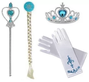 ZESTAW ELEMENTÓW DO STROJU ELSA, ANNA Berło srebrne, zdobione niebieskim kryształem w kształcie płatka serca, Korona, zdobiona niebieskimi kryształkami, srebrna, mocowana do opaski rozmiar uniwersalny, Rękawiczki, wykonane z białej lycry – rozciągliwy materiał, rozmiar jest uniwersalny - 2 sztuki (para), Ten czteroczęściowy zestaw pozwoli poczuć się każdej dziewczynce jak prawdziwa księżniczka z bajki. Zestaw idealnie sprawdzi się na balu karnawałowym lub przyjęciu urodzinowym, ale także podczas codziennej zabawy. Rękawiczki są wykonane z białej rozciągliwej lycry. Ozdobione niebieskim wzorem. Rozmiar jest uniwersalny.