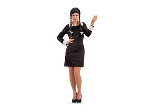 Sukienka gotyckiej uczennicy dla kobiety. Idealne przebranie na Halloween. Kostium przypomina postać Wednesday z rodziny Addamsów. Rozmiar: S/M.