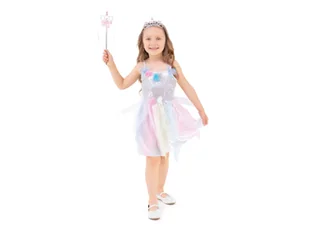 Strój wróżki w kolorach tęczy dla dziewczynki. Kostium idealny na karnawał. W komplecie: sukienka. Rozmiar: S (110-120 cm).