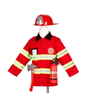 Strój strażaka marki Souza! to kompletny zestaw do zabawy. Znajdziesz w nim wszystko, czego potrzebujesz, żeby być gotowym na wielkie akcje ratownicze. Czerwona kurtka na rzepy ma jasne paski, dzięki którym będziesz widoczny nawet z daleka. Hełm możesz dostosować do głowy dziecka. W zestawie jest także plastikowy topór, gaśnica i etykieta do personalizacji przebrania.