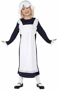 Smiffys Wiktoriański kostium biednej dziewczynki, biały, sukienka z fartuchem i czapką na Halloween