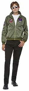 Smiffys Top Gun Maverick kurtka bomberka dla dorosłych, zielona kurtka z aplikacjami, oficjalny strój licencyjny, sztuczna skóra, oficjalny top gun Halloween fantazyjny strój