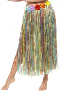 Spódniczka hawajska hula turkusowa, z paskiem w kwiaty. Do skomponowania z kolorystycznie dobranym zestawem hawajskim.