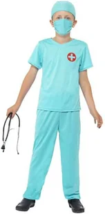 Przepiękny zestaw dla małego lekarza chirurga! Niebiesko-błękitny kostium chirurga to bluza i spodnie ale także, czapka oraz maska. Zestaw sprawia, że przebranie idealnie sprawdzi się na bal przebierańców, karnawał lub szkolne przedstawienie. Całości uroku dodaje STETOSKOP, który również jest elementem zestawu.