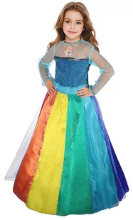 Sukienka z długim rękawkiem wykonanym z niebieskiej siatki. Dół suknii tęczowy. W zestawie koło. Skład: 100% poliester.